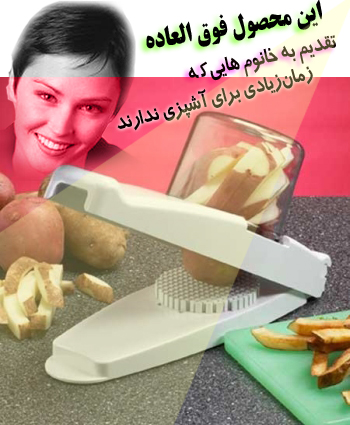 متصل کنید حال هر چیزی که خواستید نظیر سیب زمینی , پیاز , کاهو , گوجه , خیار و ... را در آن قرار دهید و دستگاه را روی آن بفشارید تا به اندازه های یکسان