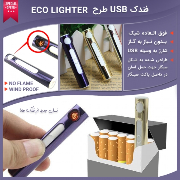 خرید اینترنتی با قیمت استثنایی فندک شارژی اکو لایتر usb المنتی اصل